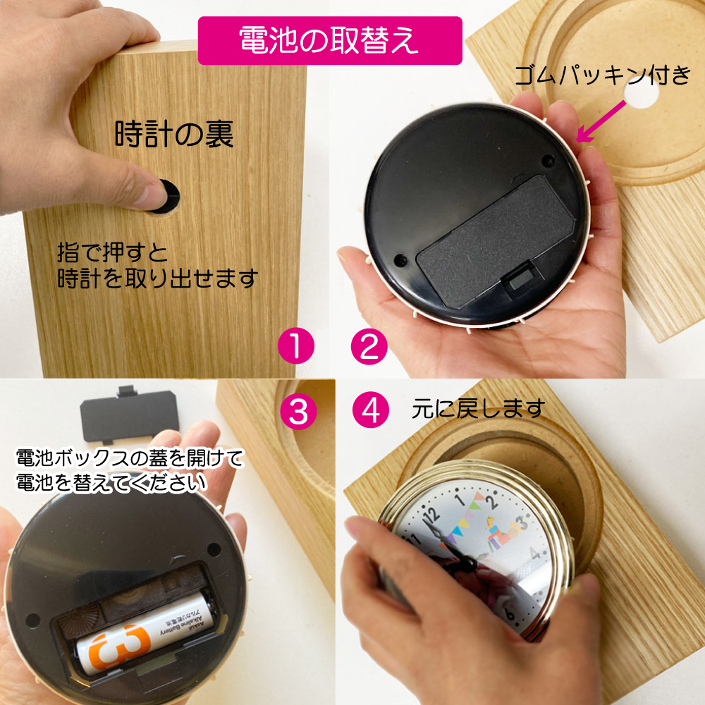 形式:木製ブック型置き時計・電池式(単三電池)