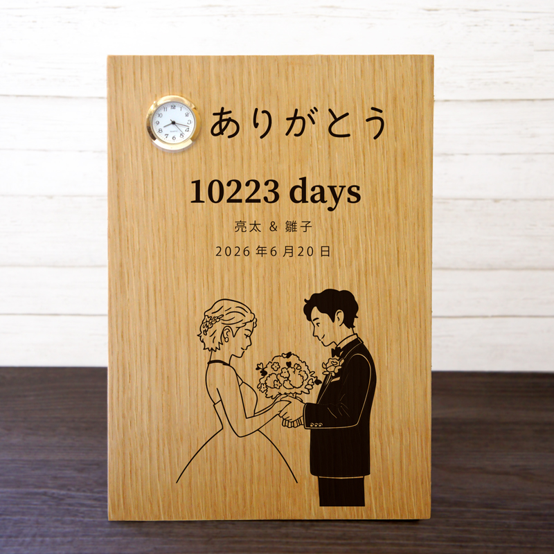 ウッドプレート置き時計 「ウェディングイラスト 」 結婚式 親へプレゼント 子育て修了証 記念品贈呈