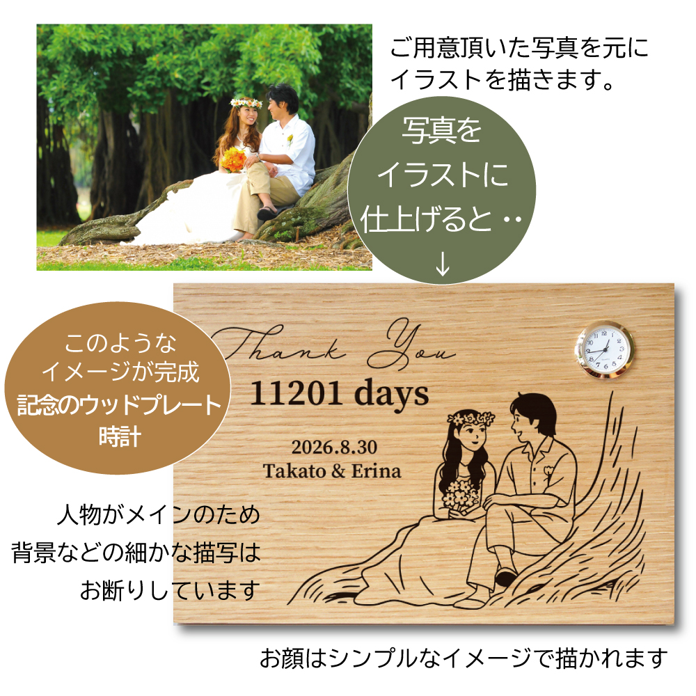 Wedding写真をイラスト化しプリントしたプレート置き時計。