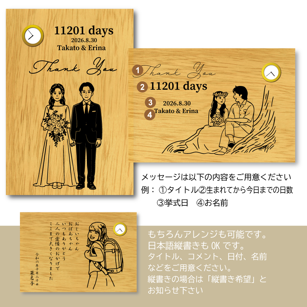 メッセージを変えることで自分達の記念品、結婚記念品なども作る事が出来ます。