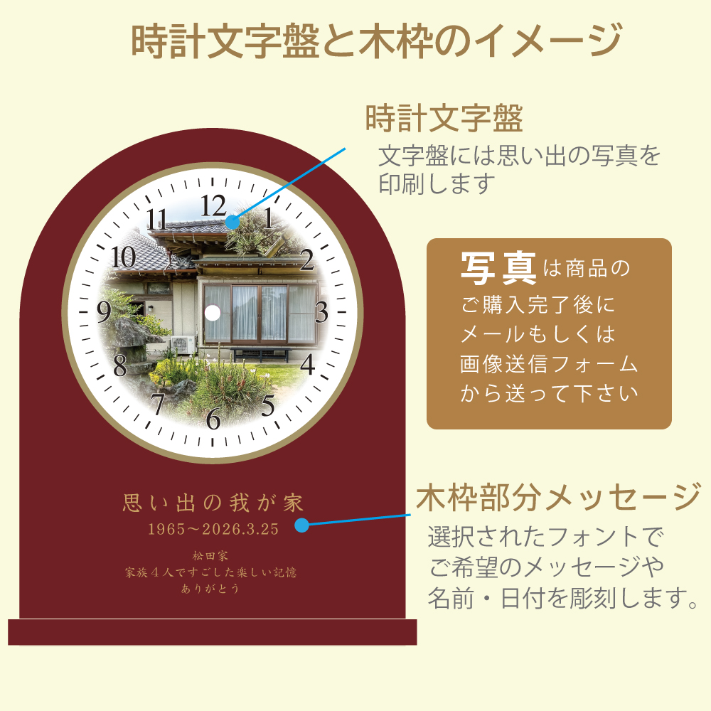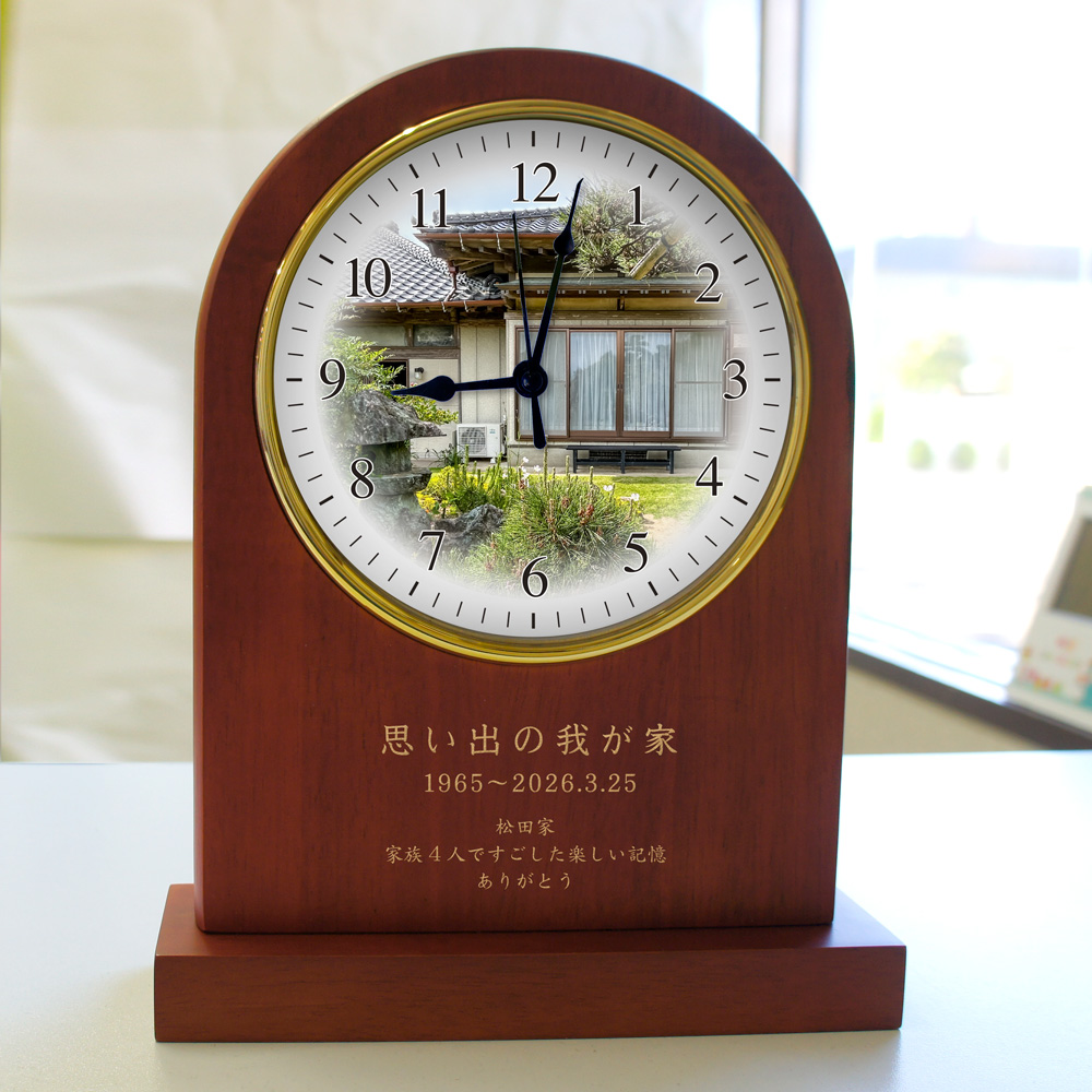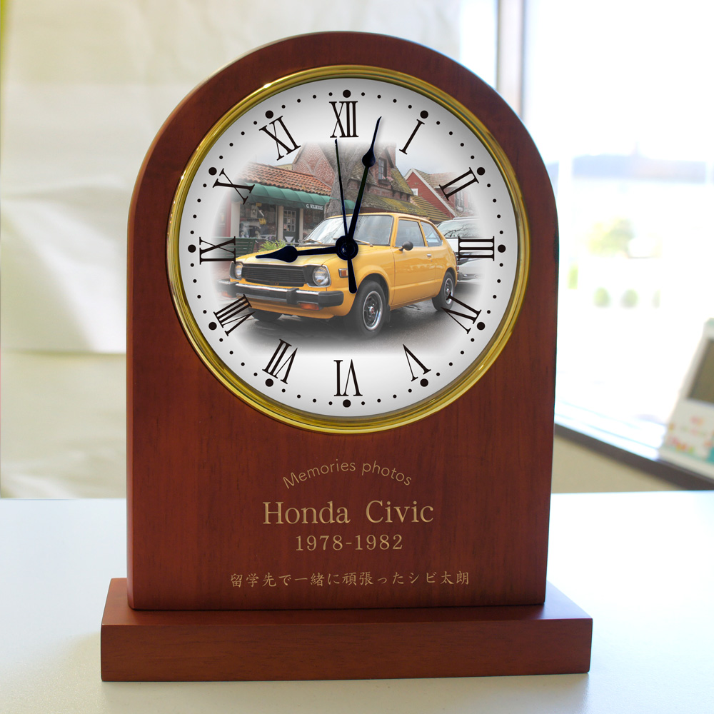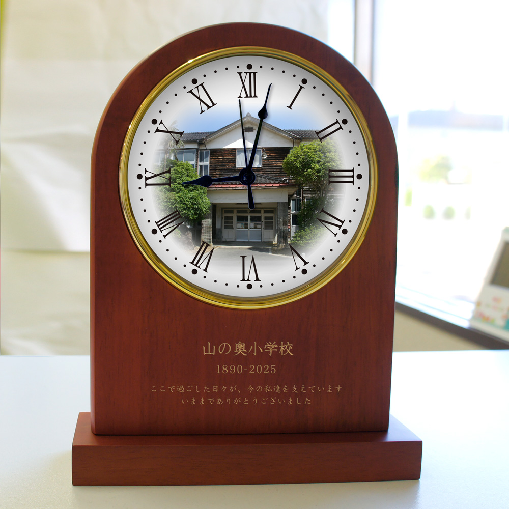 思い出写真館 木製アーチ型置き時計 家族の思い出 学校の思い出 廃校 閉校 旧車 記念品