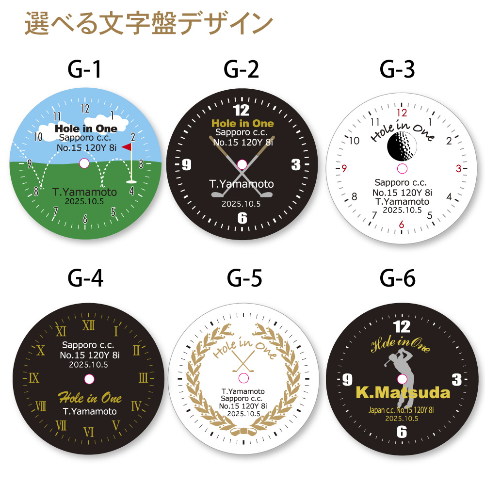 ホールインワン記念品として、名入れ、記念日、記録を印字したオリジナル文字盤の時計を作ります。